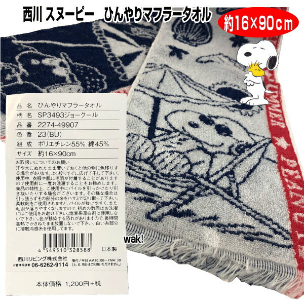 0 お得な2枚セット ひんやりマフラータオル 約16X90cm スヌーピー ミッフィー 西川リビング つめたい キャラクター ジョークール ぶるーな 日本製