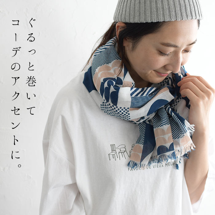 大判サイズだから、ぐるりと巻いたり、肩にさらっとかけても。